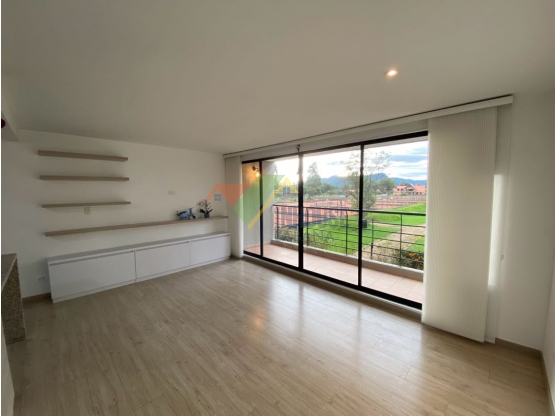 HERMOSO Y MODERNO APARTAMENTO EN CAJICA, en segundo piso, cuenta con linda vista externa al club la HACIENDA,ingresar encontramos amplia zona social, la sala y el comedor tienen un amplio ventanal de piso a techo con un cómodo balcón, la cocina abierta, muy iluminada, zona de lavanderia. El hall de alcobas tiene el baño social, una habitacion auxiliar con baño completo, la habitación principal cuenta con wolking closet y baño privado. El apartamento se encuentra en un proyecto nuevo, con acabados modernos e inteligente, con canales de ventilación natural para renovar el aire contenido al interior de los aptos, con almacenamiento de agua lluvia para riego de jardines y lavado de zonas de parqueo, el parqueadero del conjunto es descubierto.