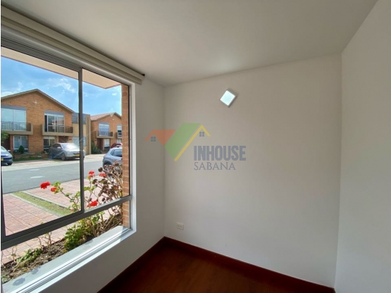 Hermosa casa con ubicacion privilegiada en Cajica, 104 mts construidos en lote de 130 mts, en el primer nivel encontramos puerta de seguridad, estudio, cocina integral e integrada a la zona de lavanderia,deposito, sala comedor con puerta ventana a la hermosa zona verde, en el segundo nivel encontramos dos habitaciones auxiliares cada una con closet y baño compartido, la habitación principal cuenta con balcón, walking closet y baño privado. La casa cuenta con dos parqueaderos descubiertos.